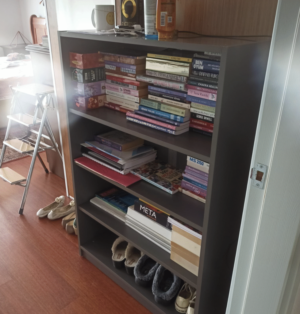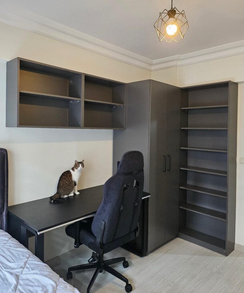 Sütunla kiriş arasındaki dar bölümü kitaplık olarak değerlendirmek istiyordum, daha önce sipariş ettiğim gardolaptan çok memnun kalınca buraya da bir kitaplık alayım dedim. hem kullanışsız köşe işlev kazandı hem de kitaplarımın boyuna göre ayarlayabildiğim için bir sürü kitabımı koyabildim. ayrıca benzer dolapların arkası için diğer markaların hepsi kartonplak kullanmasına rağmen adaptx 1/2cm kalınlığında kalın malzeme kullanmış, çok teşekkürler.