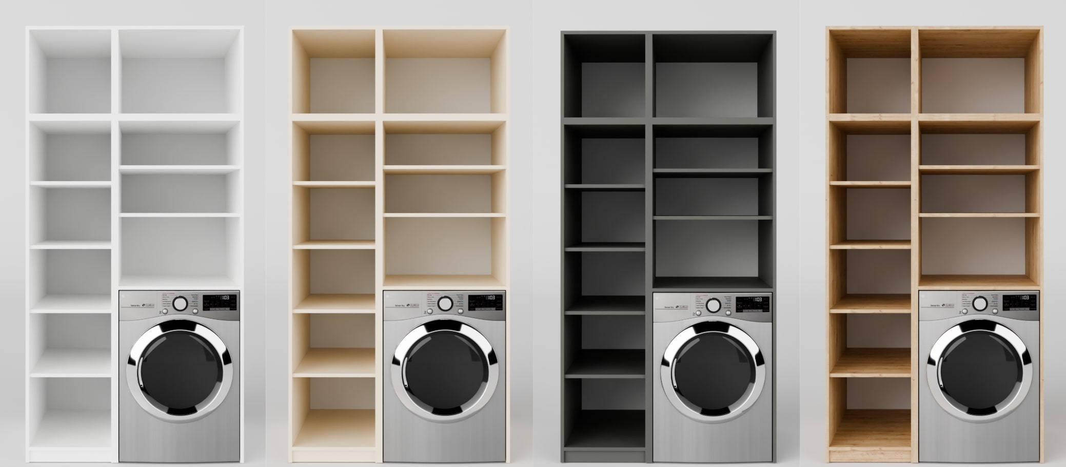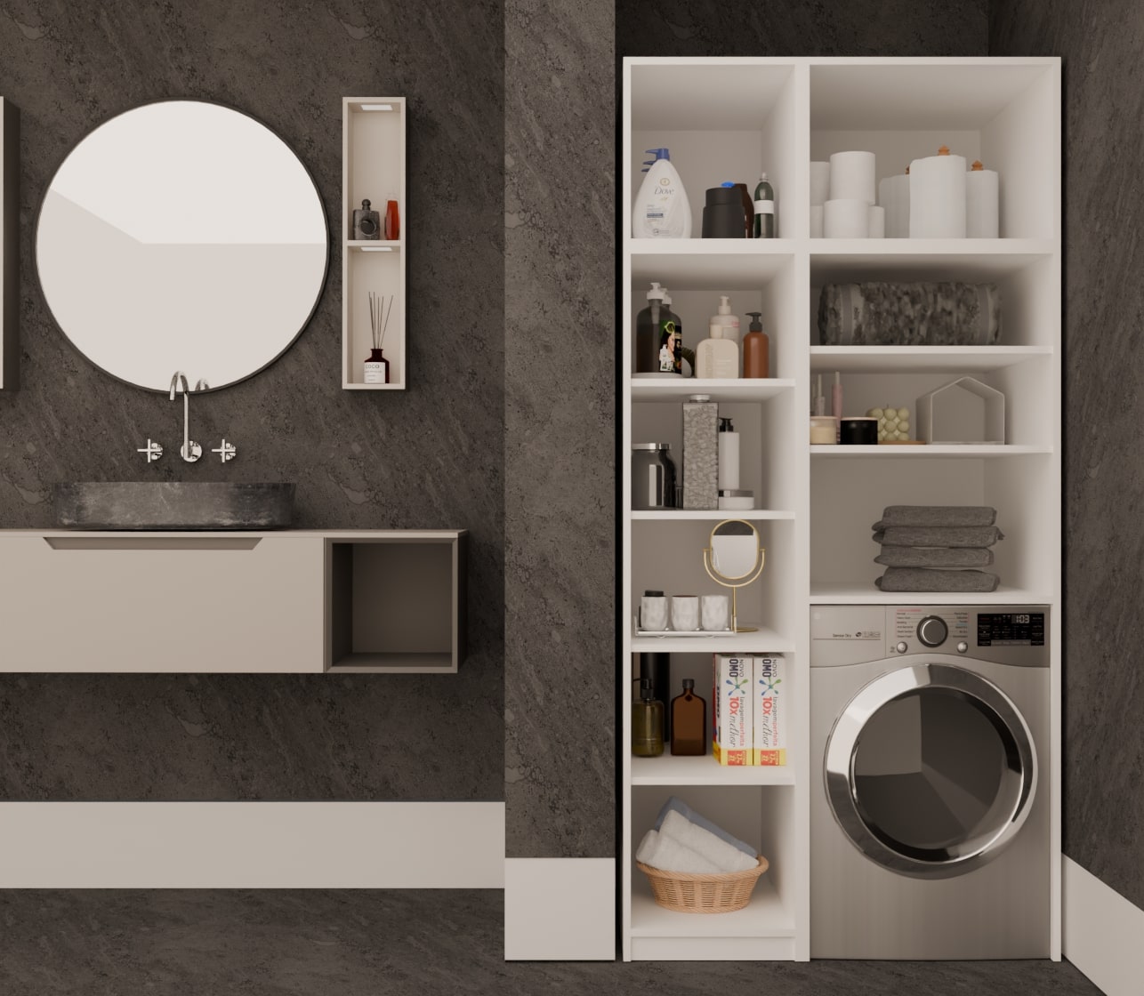 Çamaşır ve Saklama Alanı: Çamaşır makinanız için düzenli bir alan yaratırken, raflar hurç ve diğer eşyalarınızı saklama imkanı sunar.