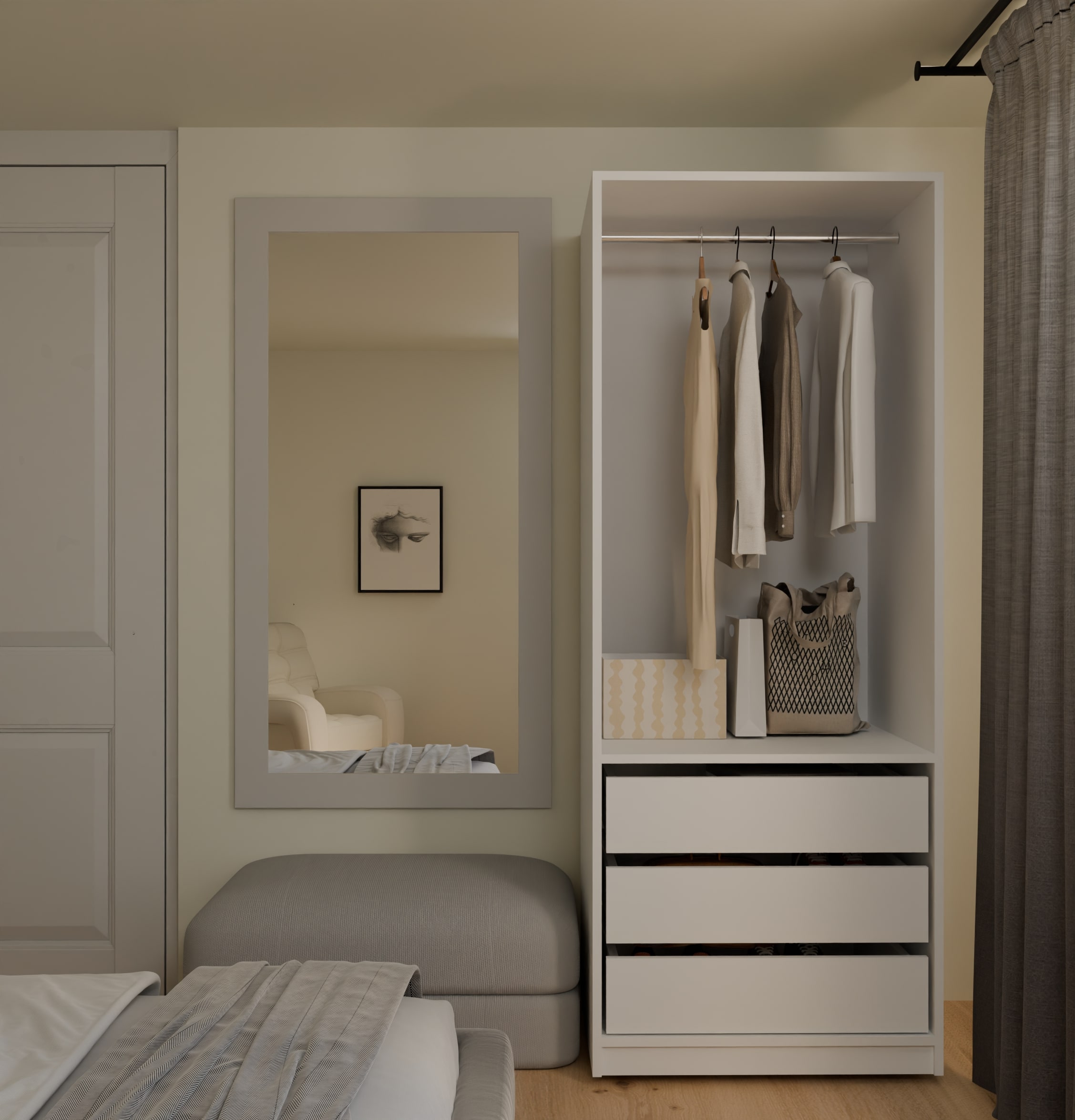 Askılık ve Çekmece Kombinasyonu: Kıyafetlerinizi düzenli bir şekilde asarken, çekmeceleri günlük eşyalarınız için kullanın.
