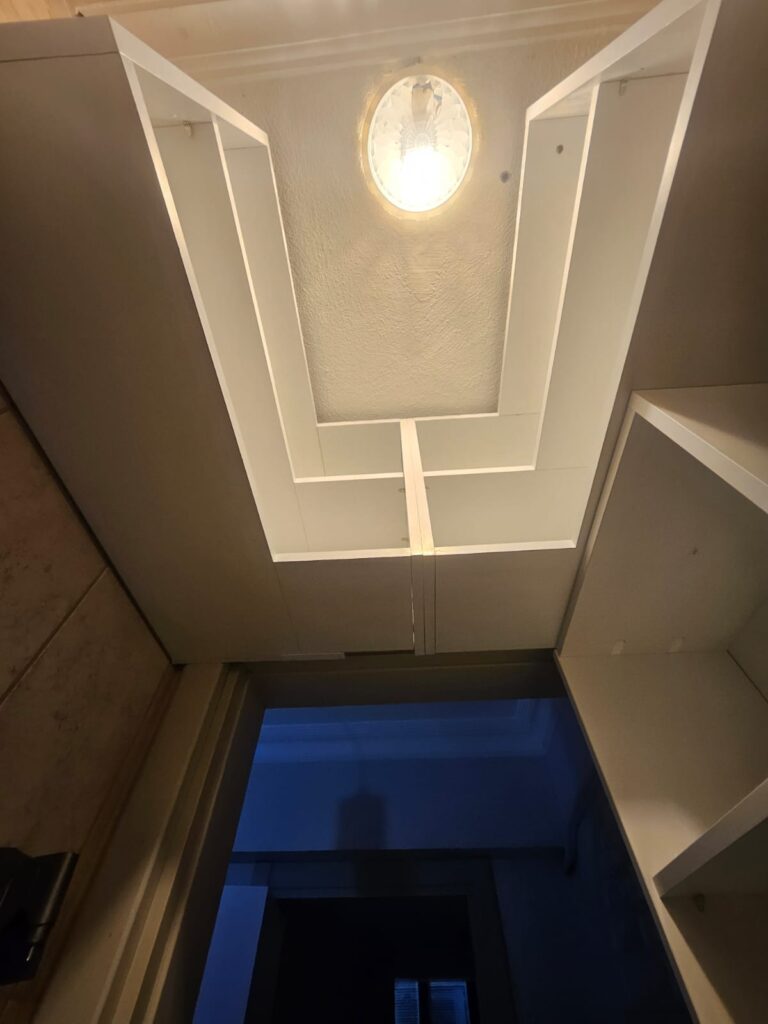 Kiler’in kapı kısmının üstündeki alanı kullanmamı sağladı. Böyle bir çözümü başka hiçbir yerde görmedim. Harika, elinize sağlık. (Fotoğrafı yerden tavana doğru çektim, umuyorum anlaşılıyordur)